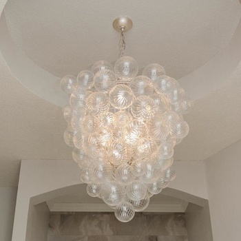 사용자 정의 현대 손으로 날려 유리 글로브 라운드 샹들리에 교수형 램프 빌라 호텔 인테리어 장식 버블 볼 펜던트 조명